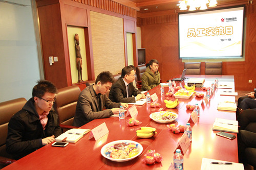 2013年4月8日上午,中建材國貿(mào)舉行了第一期“員工交流日”活動,公司總經(jīng)理張勁松和來自不同部門的10名基層員工進行了一次面對面的交流。交流會開始,張總對此次交流目的進行了介紹:“這次交流會我也是作為公司的一員,普通的一員來參與其中,和員工們一起努力解決公司發(fā)展中存在的問題。此次活動就是要跟員工做一次平等的