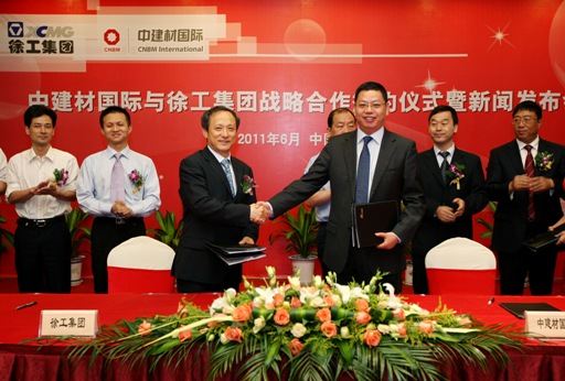 2011年6月15日,中建材國際貿易在徐州與徐工集團正式簽署戰(zhàn)略合作協(xié)議。中建材集團進出口公司副總經理、中建材國際貿易總經理張勁松,徐工集團董事長、黨委書記王民出席簽約儀式并代表雙方在協(xié)議上簽字。徐工集團是建筑機械領域的老牌龍頭企業(yè),此次簽約將為中建材國際貿易建筑
